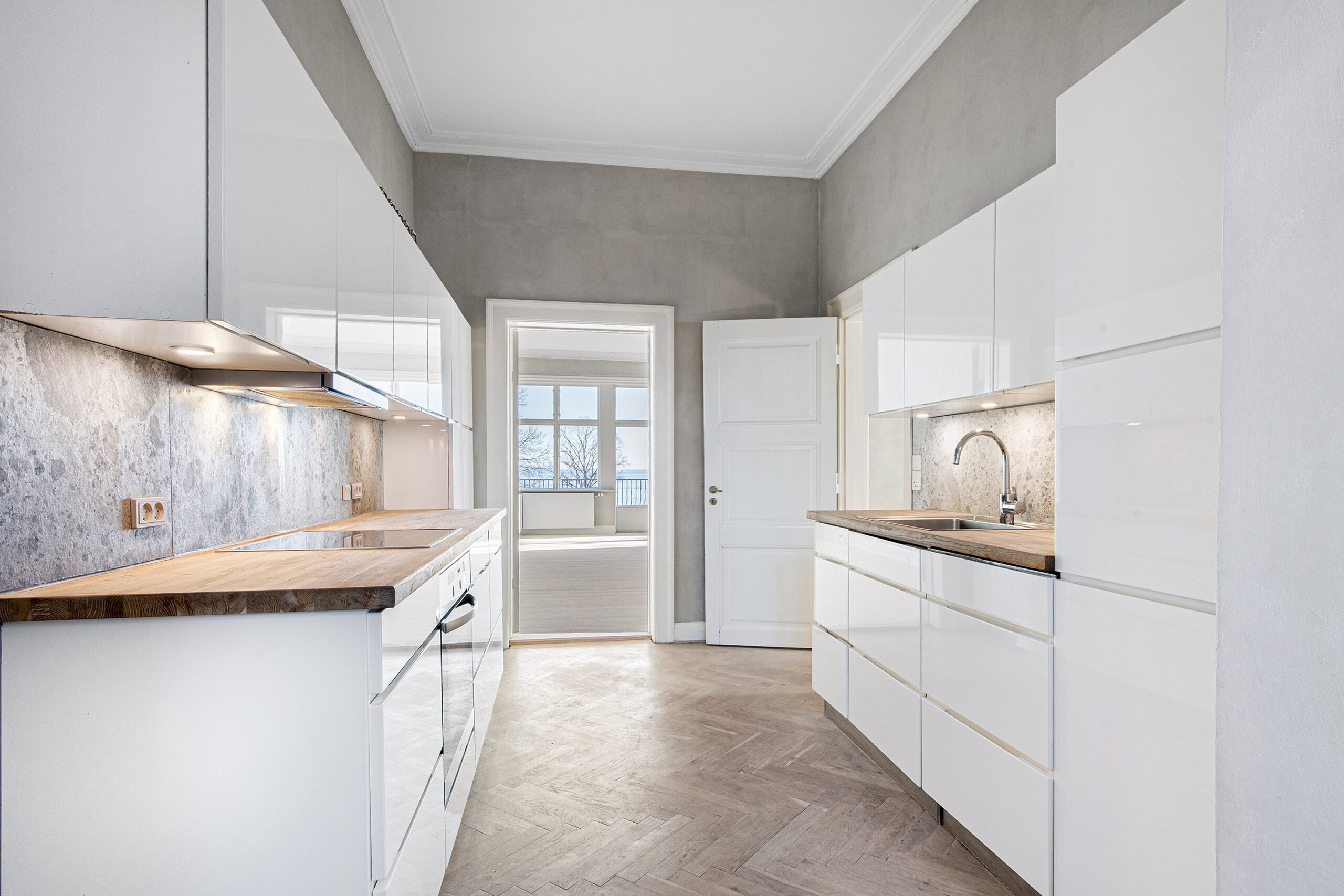 Det veludstyrede køkken er funktionelt og veldisponeret, og badeværelset fremstår stilrent og rummeligt. Samlet set byder boligen på en harmonisk planløsning, hvor klassisk herskabelighed og moderne komfort går hånd i hånd.