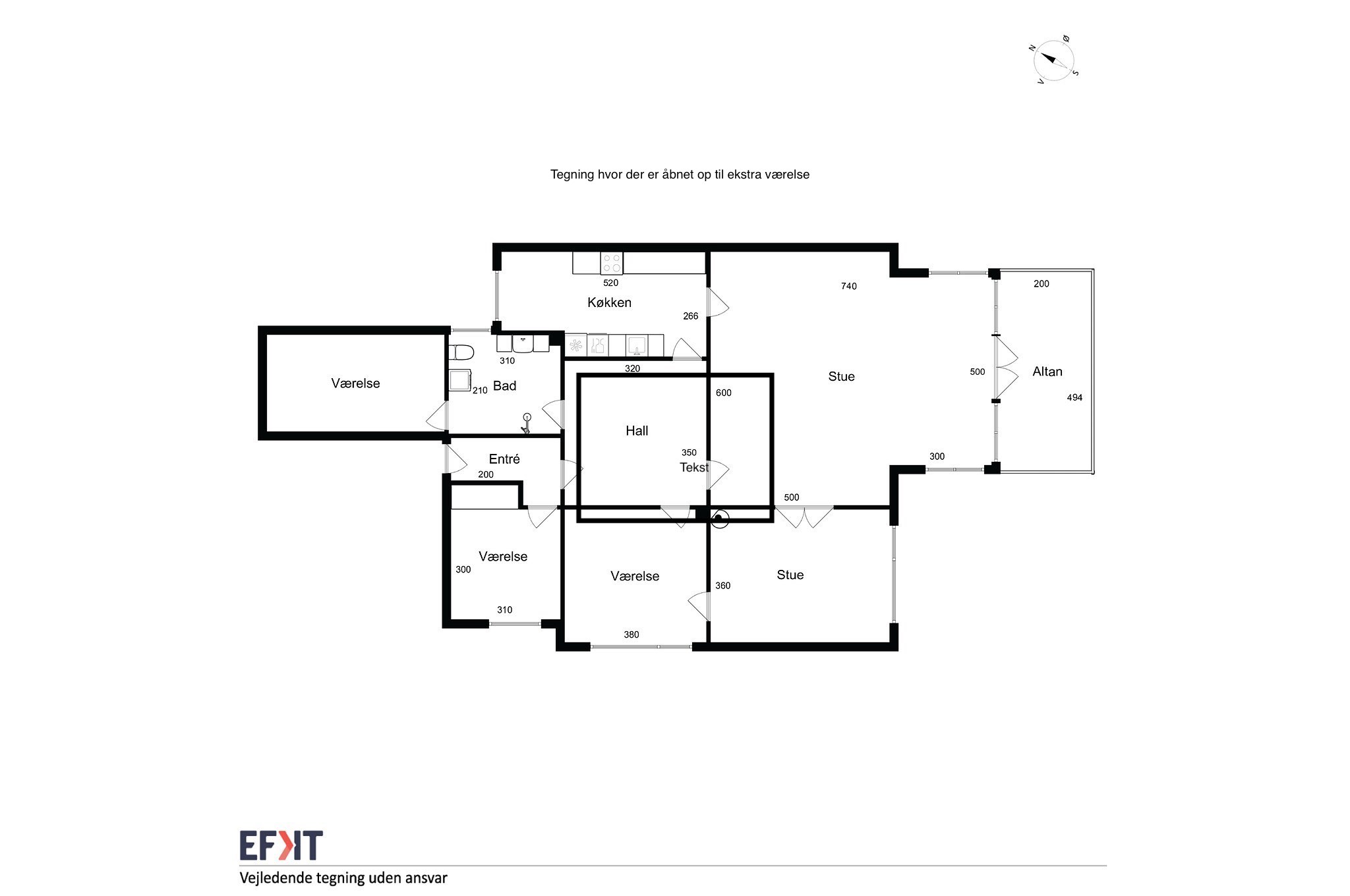 Udlejer er indstillet på at fjerne badekarret i badeværelset og etablere en vaskesøjle. Samtidig kan der åbnes op mellem badeværelset og det tilstødende værelse, som i dag har separat adgang fra opgangen. Denne løsning vil integrere rummet fuldt i lejligheden og øge boligarealet til i alt ca. 175 m², hvilket giver endnu bedre sammenhæng og funktionalitet.