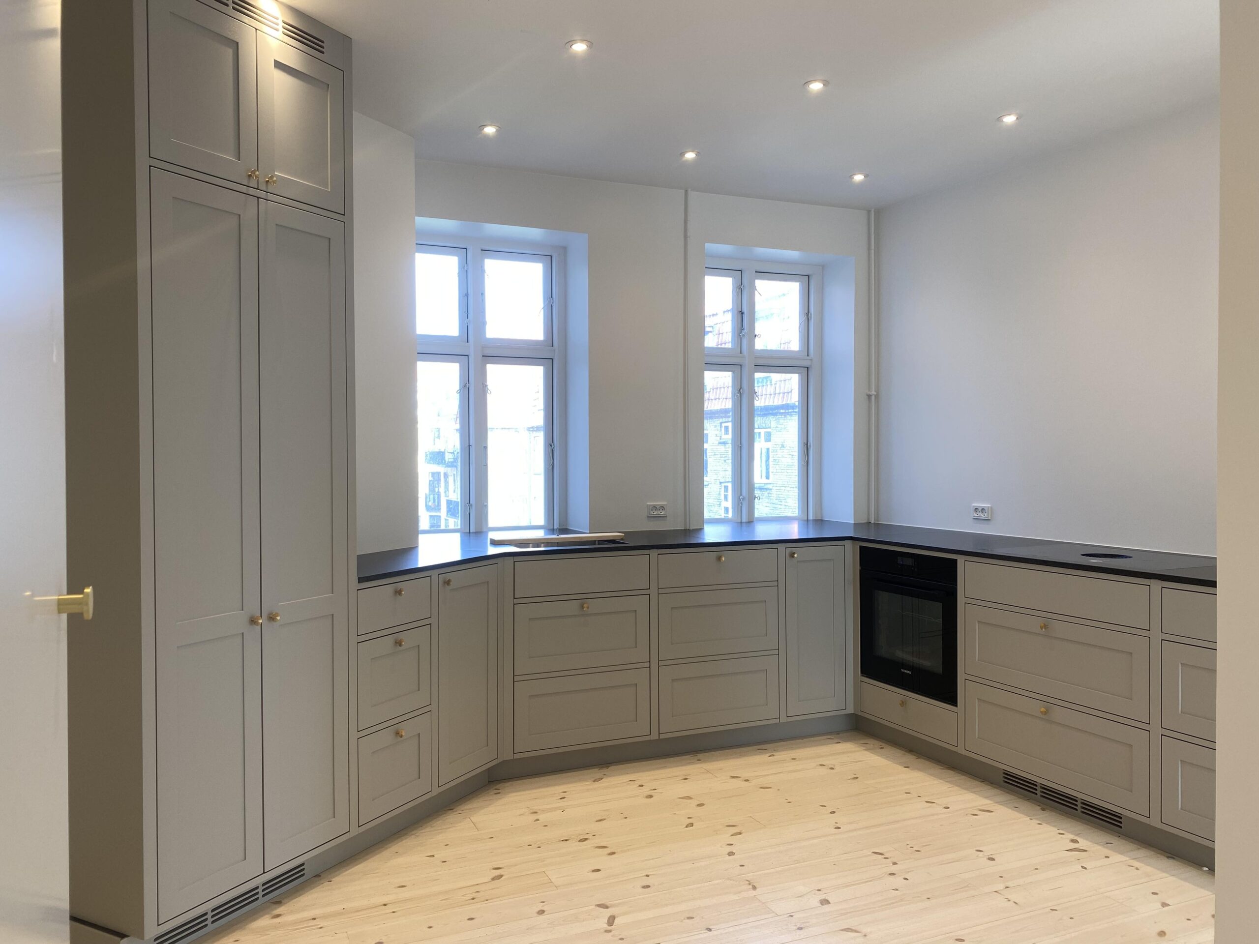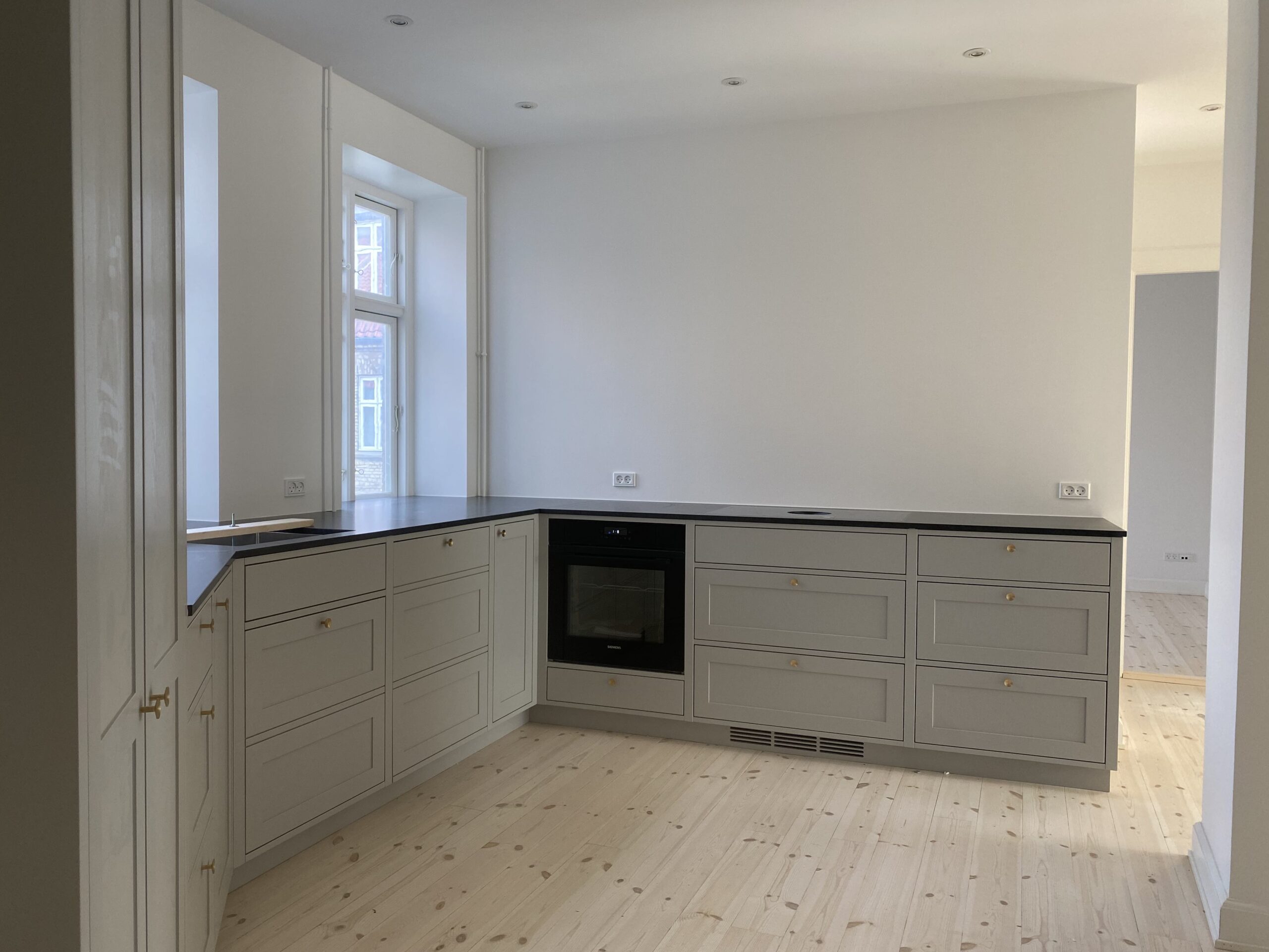 Lejligheden er total nyistandsat, og de sidste detaljer er netop ved at blive færdiggjort. Her får du nyt køkken, nyt badeværelse, ny el, flotte lyse plankegulve samt stuklofter og andre klassiske detaljer – alt gennemført med respekt for ejendommens oprindelige stil og med moderne komfort i fokus.